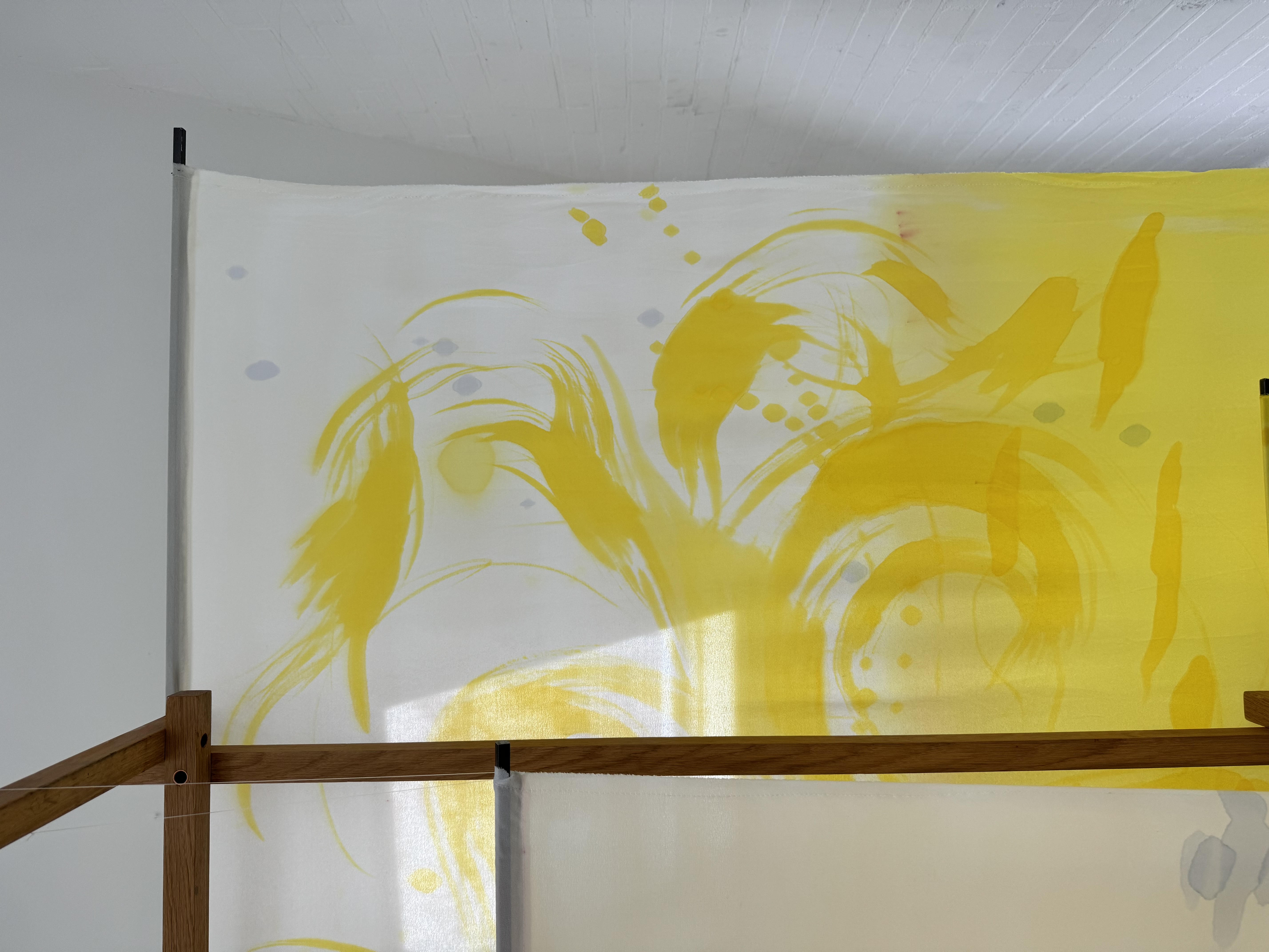 Silk, wood, steel, crystal prisms, zip ties, glass